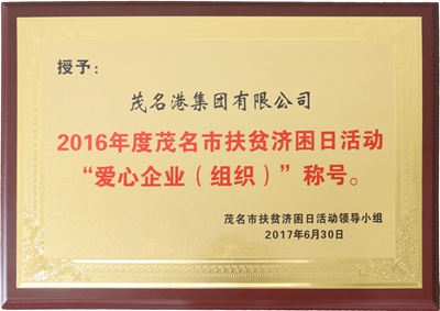 2016年度茂名市扶貧濟(jì)困日活動“愛心企業(yè)(組織)”稱號