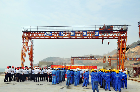 施工單位中國(guó)港灣防波堤項(xiàng)目總經(jīng)理毛洪新在發(fā)言中表態(tài),將加快茂名港博賀新港區(qū)防波堤建設(shè)進(jìn)度,控制工程成本和提高管理水平,“趕進(jìn)度、保質(zhì)量、保安全、保文明施工”。在“大干四季度”活動(dòng)時(shí)間內(nèi),東防波堤推填里程至900m;護(hù)面塊石理坡及扭王字塊安裝及時(shí)跟進(jìn),確保堤身暴露長(zhǎng)度不超過(guò)50m;完成扭王字塊預(yù)制2000塊。