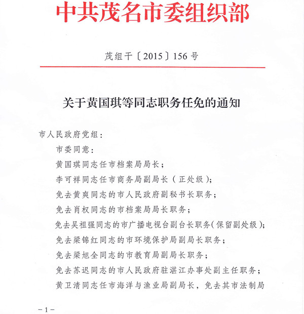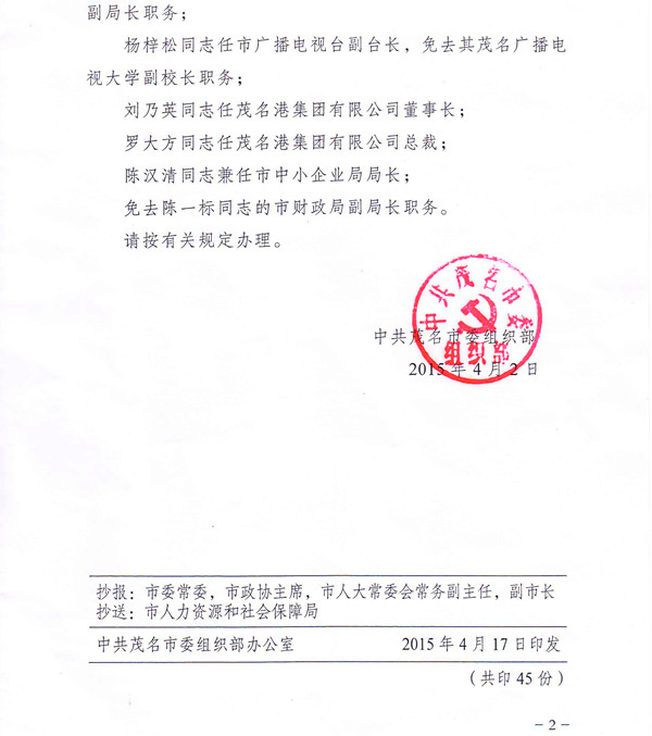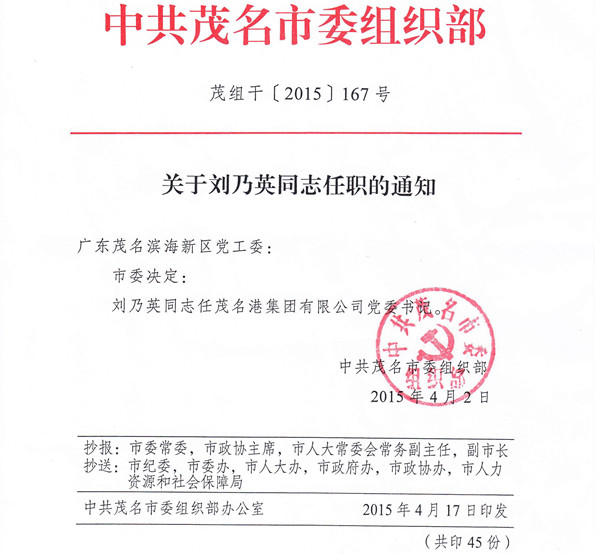 市委決定:劉乃英同志任茂名港集團(tuán)黨委書記、董事長 羅大方通知任集團(tuán)公司總裁.pdf