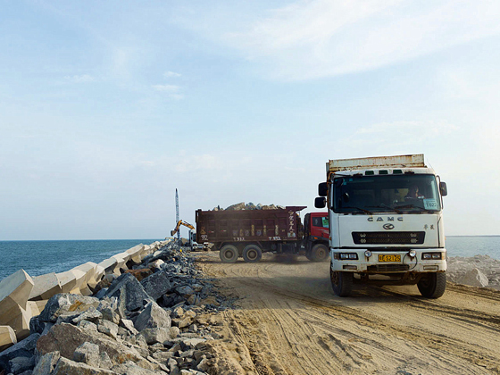 經(jīng)過(guò)開(kāi)發(fā)建設(shè)公司防波堤項(xiàng)目管理團(tuán)隊(duì)狠抓兩個(gè)措施的落實(shí),強(qiáng)力督促施工單位做好防波堤堤身防護(hù),并同步加快推進(jìn)防波堤的里程進(jìn)展,突破了制約施工進(jìn)展瓶頸,為完成東西防波堤今年的目標(biāo)計(jì)劃做好了充分準(zhǔn)備。