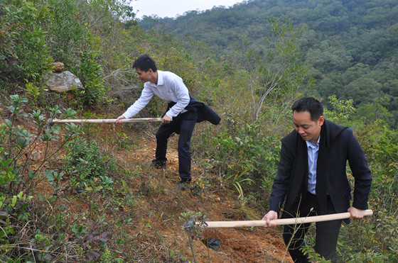 在莊山公園種花現(xiàn)場,大家熱情高漲,干勁十足,相互配合,將一筐筐杜鵑花幼苗手提肩扛到半山腰,揮鋤挖土填坑、插種花苗、踏實(shí)土層,一棵棵杜鵑花苗落地生根。經(jīng)過一個多小時努力,大家共種植下花苗近千株。這些杜鵑花長成后將會是莊山公園里那一片美麗的花海。