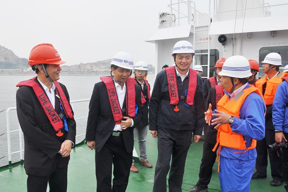 昨天下午,市委副書記、市長李紅軍,市委常委、濱海新區(qū)黨工委書記趙廣輝等有關(guān)部門負責(zé)同志前往博賀新港區(qū)防波堤施工現(xiàn)場,并乘船檢查和察看了堤頭口門處沉箱的安裝情況。李紅軍對博賀新港區(qū)防波堤項目首件沉箱安放成功表示祝賀,對勤勞奮斗在項目一線的施工人員表示慰問。他強調(diào),首件沉箱的出運安裝是防波堤建設(shè)的重要里程碑,標(biāo)志著項目建設(shè)邁出最堅實一步。全部沉箱安裝完成后,防波堤的框架將基本定型,為防波堤后續(xù)的建設(shè)奠定堅定的基礎(chǔ),對博賀新港區(qū)一大批碼頭項目的快速推進具有突破性意義。同時,李紅軍還要求各級部門和施工方繼續(xù)發(fā)揚連續(xù)奮戰(zhàn)的精神,再次譜寫新區(qū)加快發(fā)展新篇章。此外,要緊抓當(dāng)前有利天氣條件,全力以赴加快項目建設(shè)進度,推進重大項目實現(xiàn)新的突破。