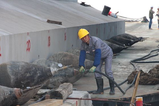 四兩撥千斤,氣囊移動巨型沉箱