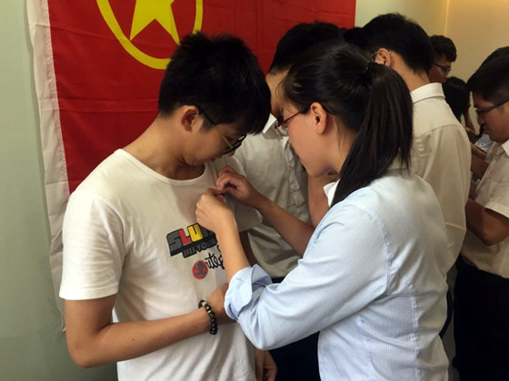 會議傳達學習了團市委關(guān)于積極開展“五四”系列活動的精神,重溫了以“愛國、進步、民主、科學”為核心的五四精神,并舉行了黨員干部為團員佩戴團徽的儀式。