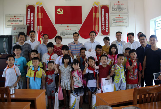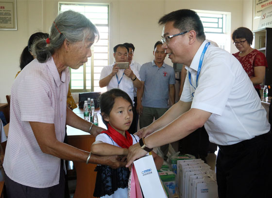 廣東通校科教電子有限公司總經(jīng)理張偉清為貧困兒童派送禮物