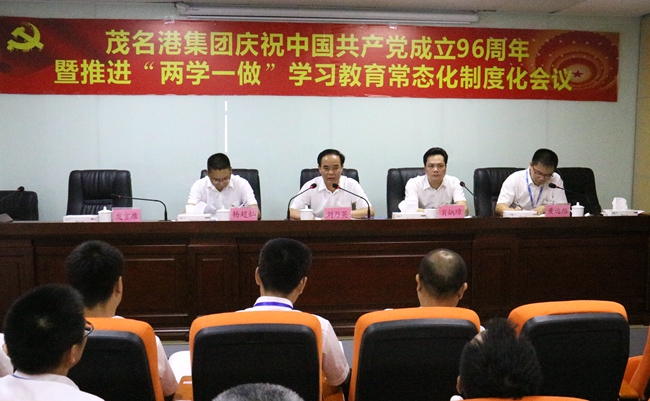 6月28日,茂名港集團(tuán)召開慶祝中國共產(chǎn)黨成立96周年暨推進(jìn)“兩學(xué)一做”學(xué)習(xí)教育常態(tài)化制度化會(huì)議。集團(tuán)黨委書記、董事長劉乃英圍繞推進(jìn)“兩學(xué)一做”學(xué)習(xí)常態(tài)化制度化工作為廣大黨員上了一堂生動(dòng)而深刻的黨課,黨委副書記、紀(jì)委書記肖炳璋主持會(huì)議,副總裁楊超燦宣讀了《關(guān)于表彰2016年度優(yōu)秀黨員的決定》,黨委委員黃遠(yuǎn)維對(duì)《關(guān)于2017年推進(jìn)“兩學(xué)一做”學(xué)習(xí)常態(tài)化制度化的實(shí)施方案》作了說明。