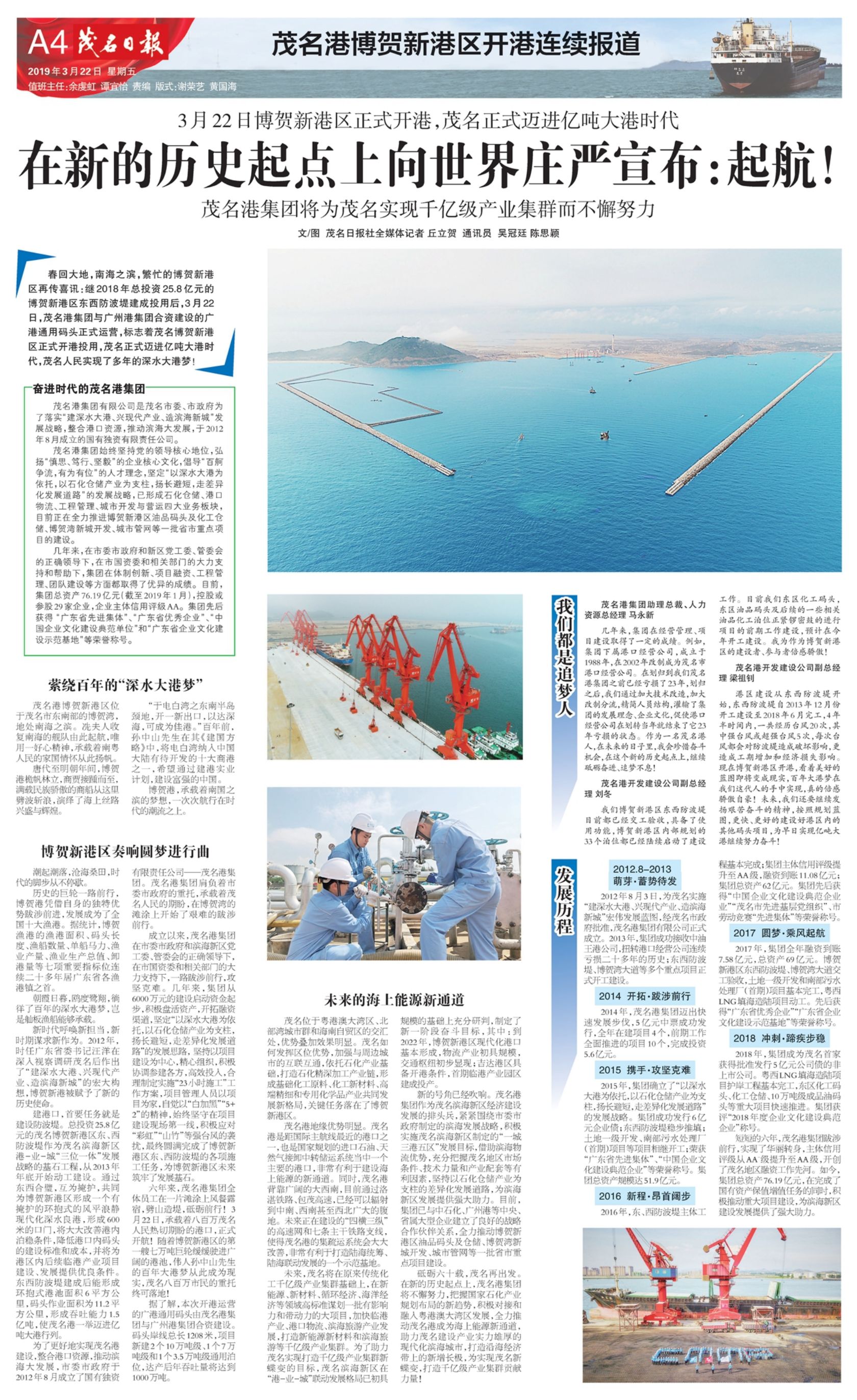 茂名日報 第2019-03-22期 第A4版:茂名港博賀新港區(qū)開港連續(xù)報道