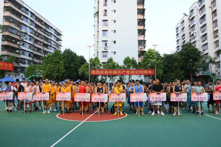 6月28日晚,由茂名港集團(tuán)主辦,建設(shè)銀行茂名市分行、茂名市茂名金源置業(yè)有限公司冠名協(xié)辦的2019“建行-金源置業(yè)杯”茂名港男子籃球邀請賽,在市文明南路銀苑籃球場拉開了序幕,為紀(jì)念建黨98周年增添喜慶氣氛。市紀(jì)委副書記潘湖,市政府副秘書長李恒和,市紀(jì)委常委徐慶,茂名港集團(tuán)黨委書記、董事長劉乃英,建設(shè)銀行茂名市分行黨委書記、行長李賢,以及各參賽單位的有關(guān)領(lǐng)導(dǎo),運(yùn)動員、裁判員及各單位觀眾等200多人參加了開幕式。茂名港集團(tuán)黨委副書記、工會主席肖炳璋主持開幕式。