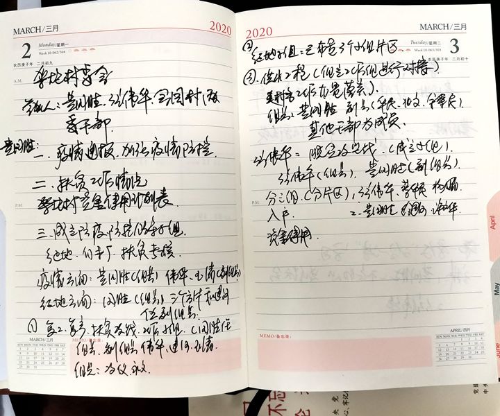 全村1412戶村民,他配合村委深入排查每一名村民的動(dòng)向及身體狀況,從外地回來人員返鄉(xiāng)前14天的去向更是核查重點(diǎn),他都詳細(xì)詢問并協(xié)助登記造冊(cè)。由于電腦操作不夠便捷,他便夾雜了一些手寫的臺(tái)賬資料,便于走村穿戶時(shí)仍能及時(shí)整理出村里人員健康動(dòng)態(tài)信息并按時(shí)向上級(jí)部門報(bào)送。特別是在架炮村發(fā)現(xiàn)一名廣州返鄉(xiāng)人員與新冠肺炎確診患者有密切接觸史后,他迅速指導(dǎo)開展落實(shí)居家隔離措施,并每天上門跟蹤該返鄉(xiāng)人員的體溫及身體狀況,直至其解除隔離,他才大大的松了一口氣。