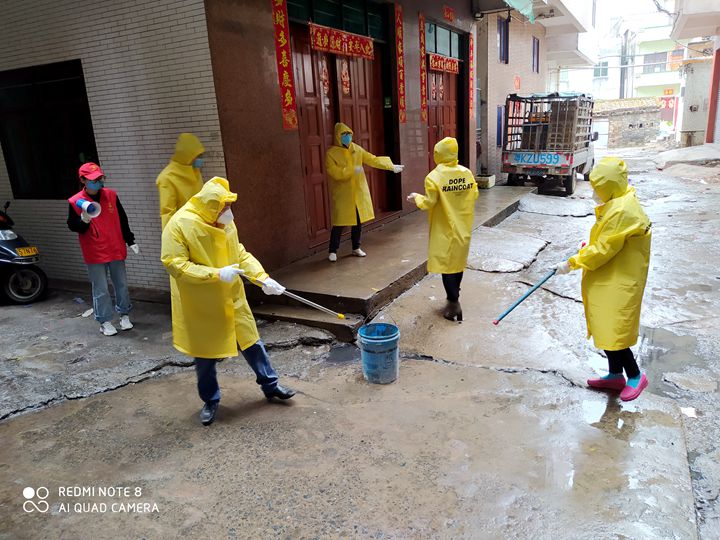 得到組織批準(zhǔn)的當(dāng)天下午,黃杰就自駕車,帶著集團(tuán)捐贈(zèng)社區(qū)的120斤消毒水等防疫物資趕到了南街社區(qū)居委會(huì)。一去到,他就背起了40斤重的消毒噴桶,跟著居委會(huì)工作人員開始了走街串巷的消毒工作。為加強(qiáng)防疫防護(hù)知識(shí)的宣傳,有長(zhǎng)期駐村扶貧經(jīng)驗(yàn)的黃杰還用黎話自編了一個(gè)順口溜: