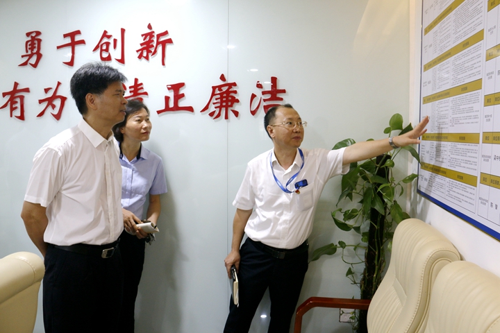 座談會(huì)上,陳軍對(duì)調(diào)研組一行表示歡迎。他表示,集團(tuán)黨委高度重視黨風(fēng)廉政建設(shè)工作,著力營(yíng)造風(fēng)清氣正創(chuàng)業(yè)工作環(huán)境。當(dāng)前,集團(tuán)紀(jì)委按照市紀(jì)委部署和集團(tuán)黨委要求,認(rèn)真貫徹落實(shí)《關(guān)于推進(jìn)<茂名市管企業(yè)紀(jì)檢監(jiān)察體制改革的實(shí)施方案>的通知》文件精神,扎實(shí)開(kāi)展集團(tuán)紀(jì)檢監(jiān)察體制改革工作,一是健全黨風(fēng)廉政建設(shè)和反腐的工作機(jī)制,結(jié)合集團(tuán)紀(jì)檢監(jiān)察體制改革實(shí)際,成立黨風(fēng)廉政和反腐工作協(xié)調(diào)小組;二是建立聯(lián)動(dòng)監(jiān)督工作機(jī)制,加強(qiáng)集團(tuán)重點(diǎn)項(xiàng)目關(guān)鍵環(huán)節(jié)的監(jiān)督,緊盯各項(xiàng)目建設(shè)關(guān)鍵環(huán)節(jié),防止“暗箱操作”,確保重點(diǎn)項(xiàng)目的高效推進(jìn);三是加強(qiáng)對(duì)干部的廉政監(jiān)督管理,集團(tuán)紀(jì)檢監(jiān)察室通過(guò)建立中層以上干部廉政檔案,教育引導(dǎo)黨員干部自覺(jué)接受組織監(jiān)督管理;四是嚴(yán)格落實(shí)提拔任用干部征求紀(jì)委意見(jiàn)的要求,嚴(yán)格按照《黨政領(lǐng)導(dǎo)干部選拔任用工作條例》精神,結(jié)合集團(tuán)人力資源工作實(shí)際,秉持“有為有位”選人用人的原則;五是堅(jiān)持開(kāi)展廉政談話教育機(jī)制,紀(jì)委堅(jiān)持每個(gè)季度對(duì)各個(gè)重點(diǎn)項(xiàng)目開(kāi)展廉政談話工作,抓住“關(guān)鍵少數(shù)”,與招投標(biāo)等特殊敏感崗位人員進(jìn)行廉政談話并簽訂《廉政從業(yè)責(zé)任書(shū)》;六是建立紀(jì)檢監(jiān)察工作聯(lián)絡(luò)員機(jī)制,發(fā)揮上下聯(lián)動(dòng)作用,形成監(jiān)督合力,確保監(jiān)督責(zé)任落實(shí)到位。