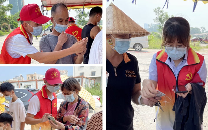 核酸檢測的現(xiàn)場有獨自前來的老人家,他們有的不知道如何使用手中的智能手機,有的只有一部舊式按鍵手機。集團黨員志愿者們耐心地幫他們錄入個人信息,成功進行核酸檢測。為照顧本地群眾的語言習(xí)慣,集團志愿者還貼心地用粵語、普通話還有“夾生”黎話(當(dāng)?shù)胤窖裕┹喎M行了“多語種”宣導(dǎo)。集團黨員志愿者熱情友好的志愿服務(wù)得到了現(xiàn)場群眾和其他志愿者的一致好評!