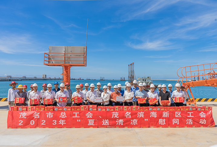 柯周梅一行深入茂名港博賀新港區(qū)10萬噸級成品油碼頭及公共管廊項目等重點項目現(xiàn)場了解項目建設(shè)情況,向堅守在一線的廣大職工送上慰問品,并與他們親切交流,了解防暑降溫舉措,關(guān)心項目進度進展,對大家頂烈日、戰(zhàn)酷暑、保進度的精神致以崇高的敬意,并叮囑廣大一線工人要增強安全意識,遵守安全規(guī)程,提高安全技能,防止因高溫作業(yè)引發(fā)安全事故,為茂名港博賀新港區(qū)建設(shè)和發(fā)展筑牢安全防線,助力茂名經(jīng)濟社會高質(zhì)量發(fā)展。