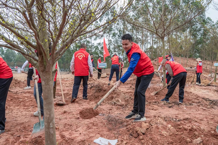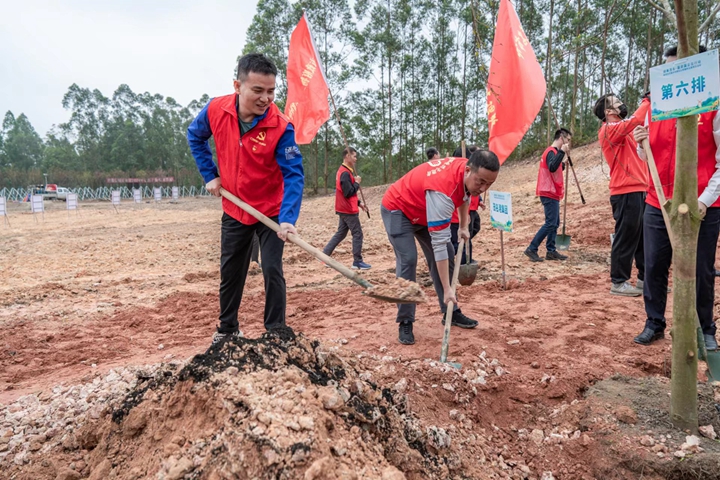 黨員志愿者們懷著滿腔熱情,早早到達了活動現(xiàn)場。大家迅速集結(jié),活力充沛、意氣風(fēng)發(fā),展現(xiàn)出茂名港人特有的精神風(fēng)采。在觀看完省國資委黨委書記、主任余鋼等領(lǐng)導(dǎo)致辭,以及“綠美廣東·國資國企在行動啟動”主會場視頻直播之后,市國資委黨委書記、主任梁劍輝致辭并宣布植樹活動正式開始,集團黨員志愿者干勁十足、躍躍欲試,扛起鐵鍬和鋤頭,大步大步向前走,展現(xiàn)出了強烈的參與意愿和行動力。