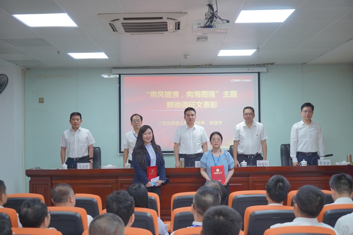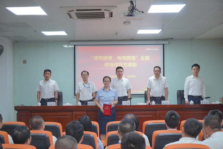 集團(tuán)機(jī)關(guān)各部(室)、各下屬企業(yè)負(fù)責(zé)人,集團(tuán)機(jī)關(guān)、下屬企業(yè)以及項(xiàng)目經(jīng)理部通訊員,“乘風(fēng)破浪,向海圖強(qiáng)”主題解說詞征文獲獎人員約60人參加會議。(通訊員:鄧添允)