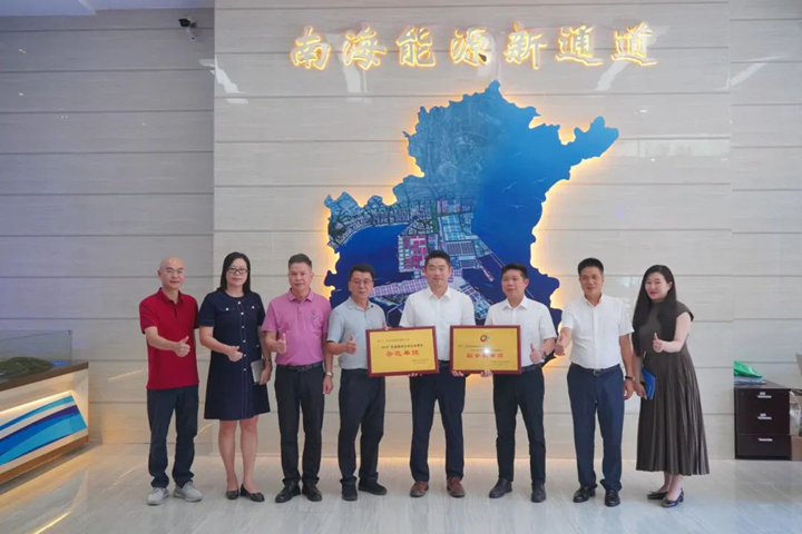 蔣斌一行首先察看博賀新港區(qū)規(guī)劃沙盤及企業(yè)文化墻并舉行了授牌儀式。他代表廣東省企業(yè)文化研究會向集團授予了“副會長單位”及“2024廣東省推動企業(yè)社會責(zé)任示范單位”榮譽稱號,朱廣宇代表茂名港集團接受兩項榮譽牌匾。
