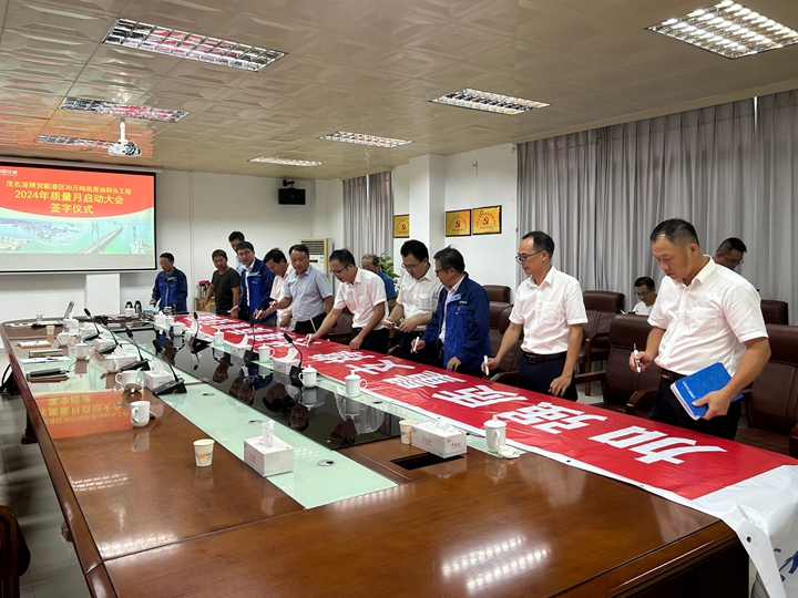 9月2號(hào),茂名港博賀新港區(qū)30萬噸級原油碼頭工程召開了2024年“質(zhì)量月”活動(dòng)啟動(dòng)儀式。會(huì)議由茂名港博賀新港區(qū)30萬噸級原油碼頭項(xiàng)目經(jīng)理部(以下簡稱原油碼頭項(xiàng)目經(jīng)理部)經(jīng)理梁祖釗主持召開,原油碼頭項(xiàng)目經(jīng)理部、中交一航局第二工程有限公司(以下簡稱施工單位)、廣州港工程管理有限公司(以下簡稱監(jiān)理單位)等參建單位參加了本次啟動(dòng)儀式。