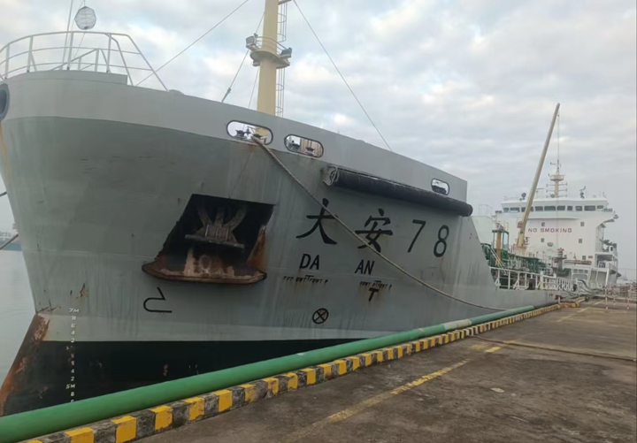 本次靠泊的“大安78”全長99.9米,寬17.2米,載重5451噸。