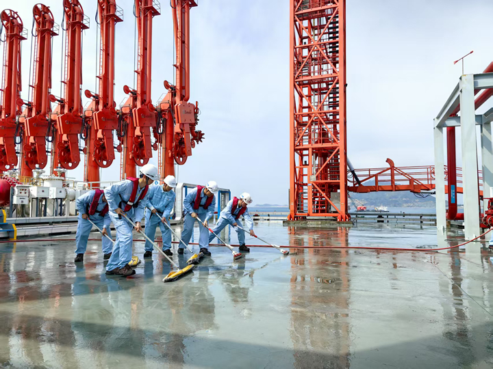 隱患排查小組深入碼頭各個角落,對設備設施進行“地毯式”檢查。他們仔細查看輸油臂、凸輪泵以及消防設施等,不放過任何細微之處。團員青年們憑借扎實專業(yè)知識,敏銳發(fā)現(xiàn)潛在安全隱患,并及時記錄匯報,為碼頭安全運營筑牢防線;衛(wèi)生清潔小組分工明確,有序清理碼頭垃圾與雜物。有的青年負責沖洗地面,有的用拖把掃把進行清潔。大家齊心協(xié)力,不怕臟累,經(jīng)過努力,碼頭環(huán)境煥然一新,為新春增添了一份整潔與清新。