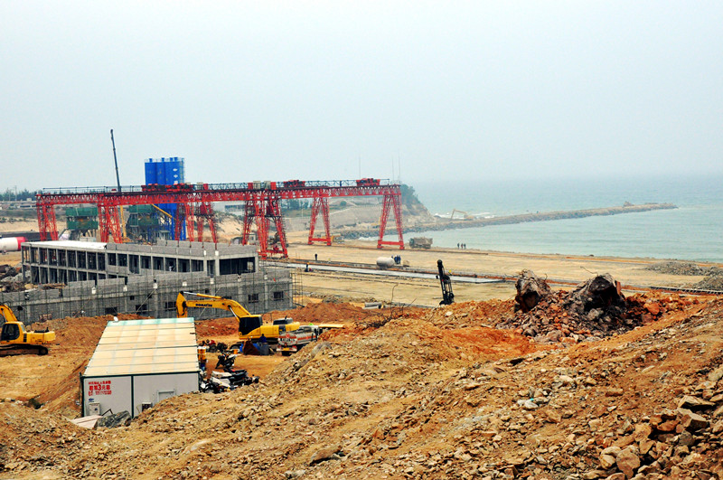 備受茂名人民關(guān)注的茂名港博賀新港區(qū)東、西防波堤工程在市委市政府的高度重視以及各部門(mén)的大力支持下,項(xiàng)目于去年12月16日正式動(dòng)工建設(shè),截至2月底,東防波堤已完成堤心石拋填4.8萬(wàn)m3和完成規(guī)格石拋填5000m3,形成堤長(zhǎng)280m。大型臨時(shí)工程扭王塊預(yù)制場(chǎng)的回填、兩臺(tái)門(mén)機(jī)以及兩臺(tái)攪拌站安裝亦已經(jīng)完成,施工方正抓緊建設(shè)門(mén)機(jī)軌道、余下的兩臺(tái)門(mén)機(jī)以及其他輔助設(shè)施。