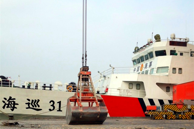 “海巡31”船停靠港口經(jīng)營(yíng)公司萬(wàn)噸級(jí)碼頭進(jìn)行物質(zhì)補(bǔ)給